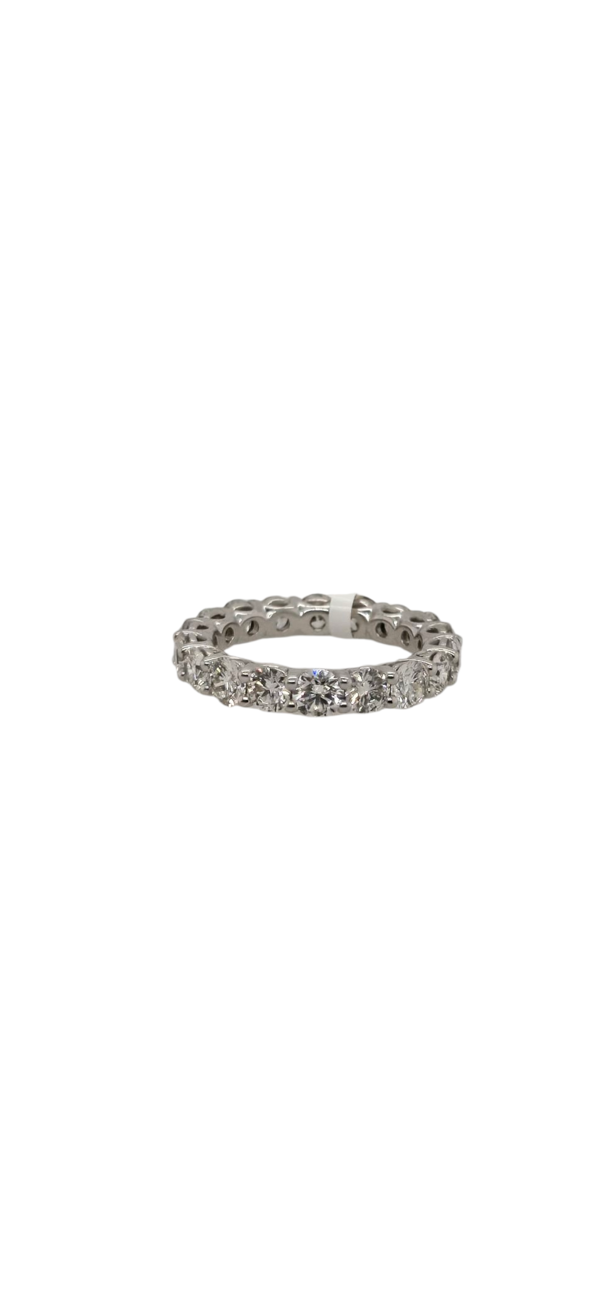 This 14k white gold eternity band showcases 16 emerald-cut lab-grown diamonds with a total weight of 2.88 carats, offering timeless elegance and sustainable brilliance. Its refined design ensures a sophisticated statement that complements any occasion with enduring sparkle.