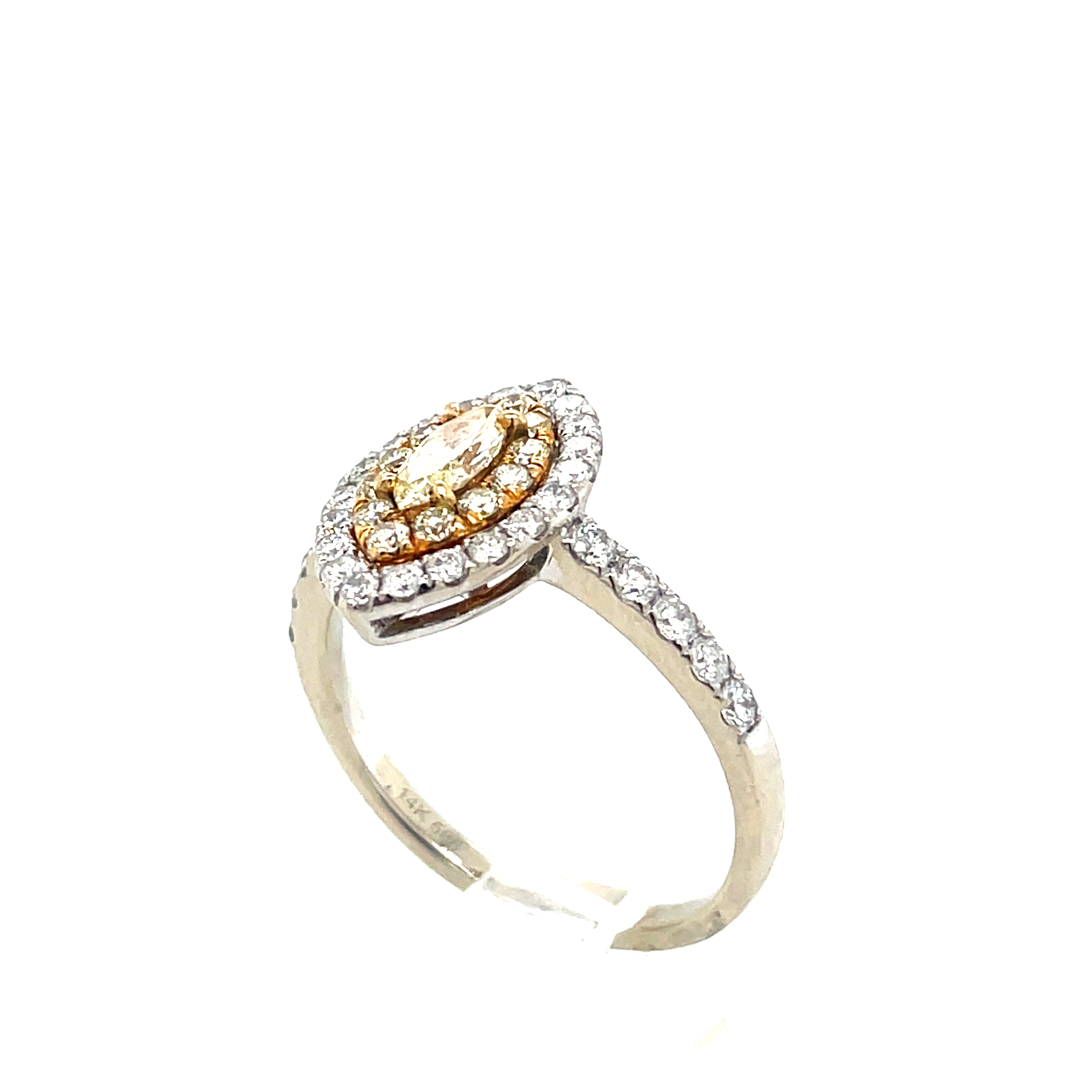 Experience luxury and elegance with our 14k White Gold Marquees & Round Yellow Diamond Ring. This stunning piece features a sparkling MQ 0.35ct round diamond and a total of 0.50cttw diamonds, set in a classic size 7 band. Indulge in the exclusivity and sophistication of this exquisite ring.
