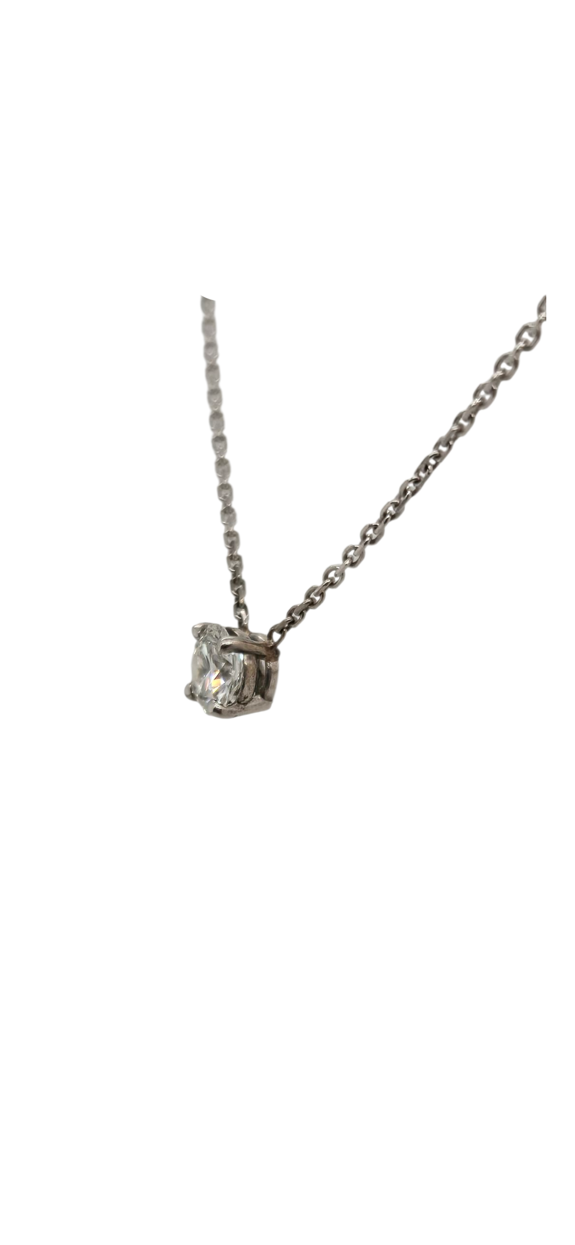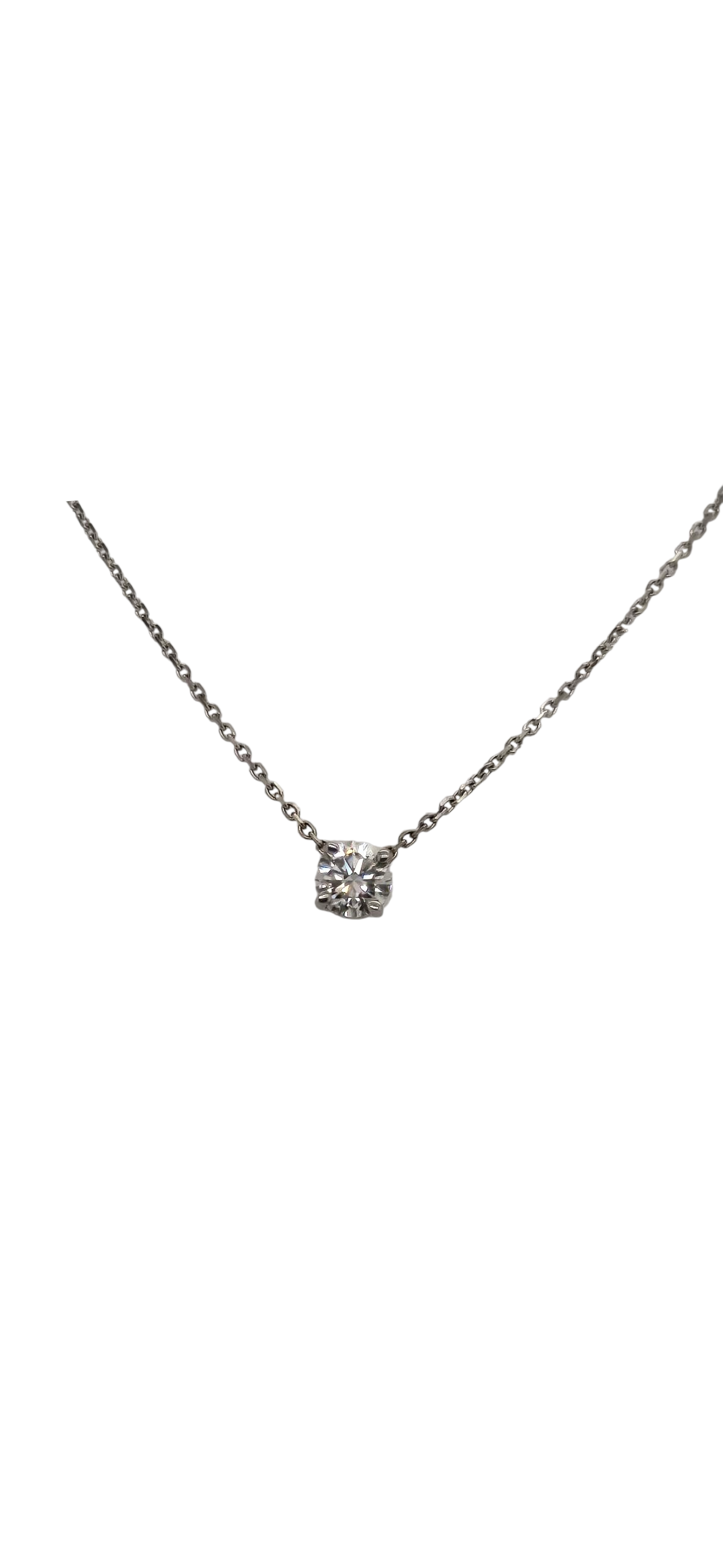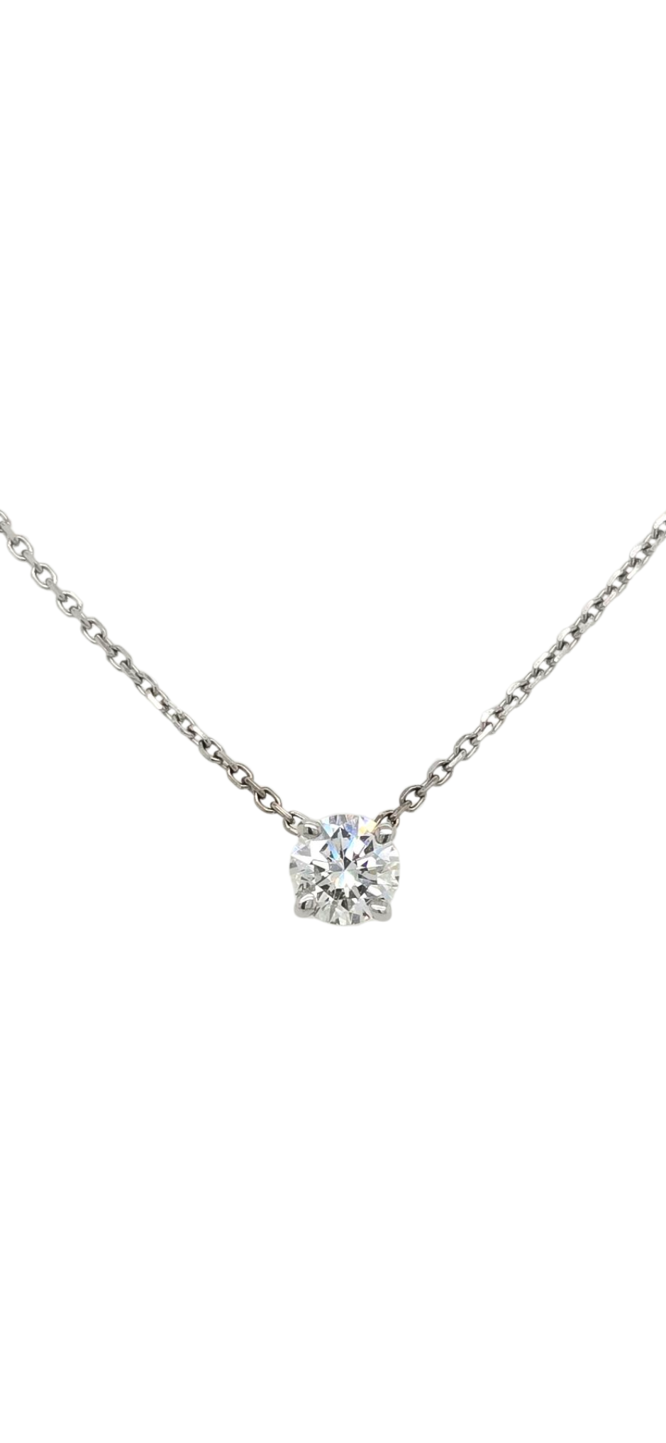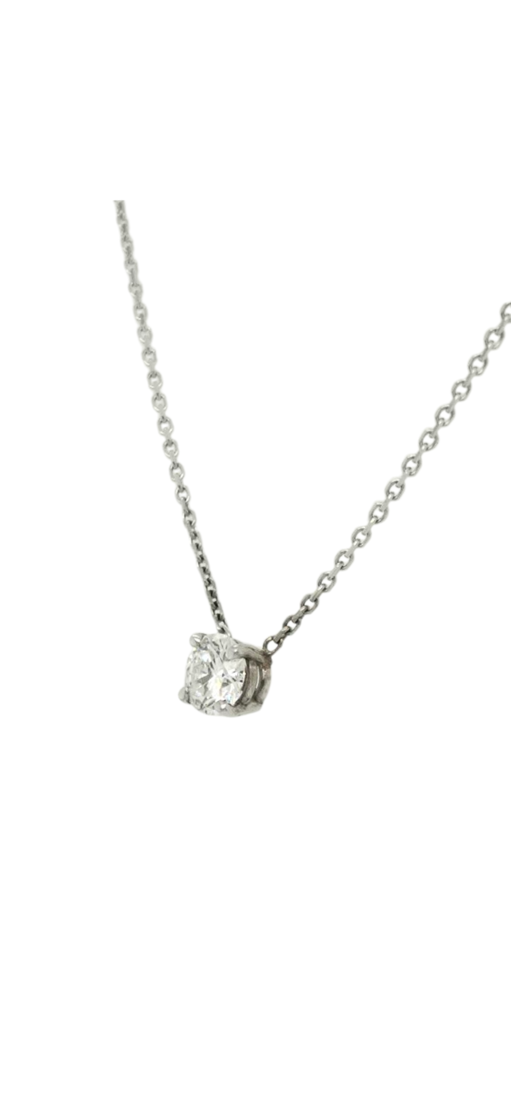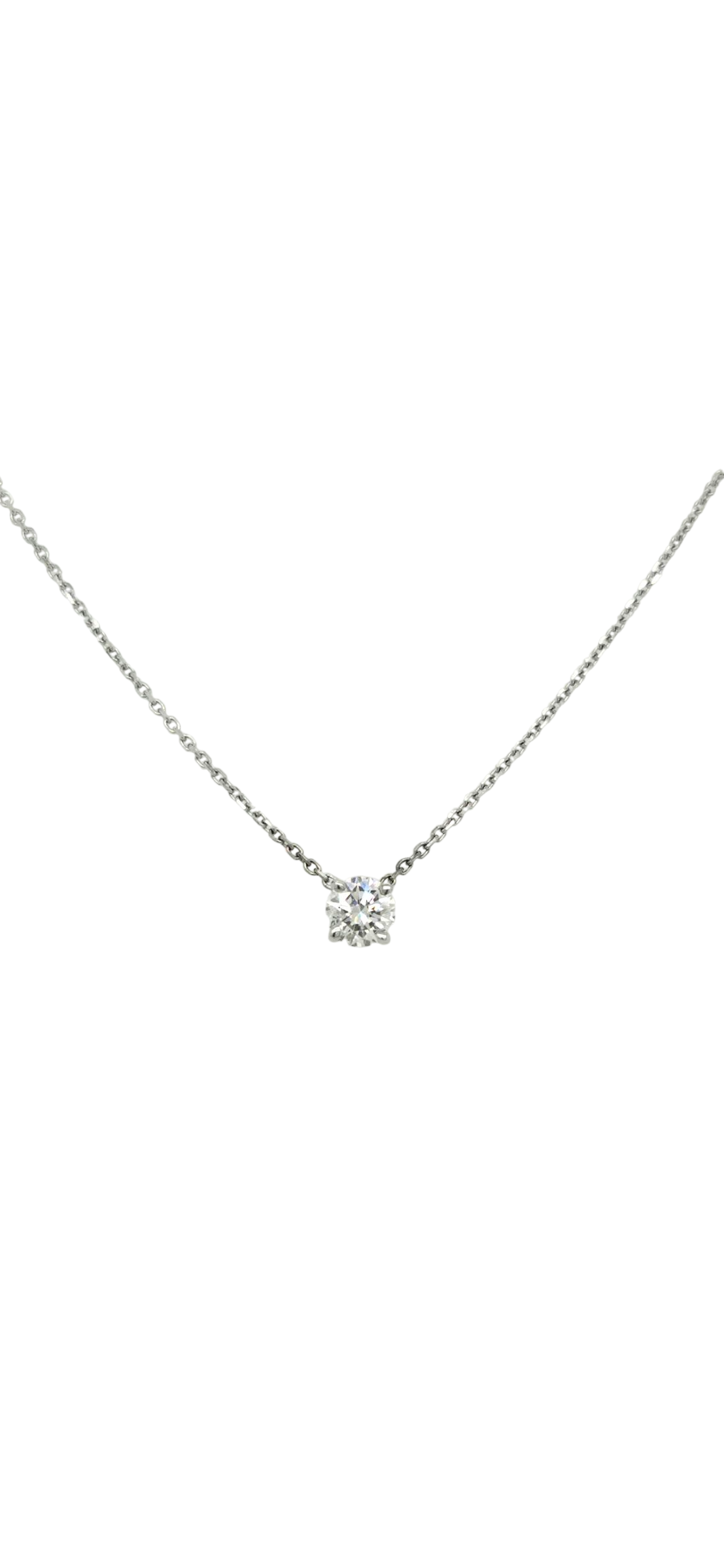 Elevate your elegance with this 14k white gold necklace featuring a solitaire round lab-grown diamond totaling 0.45 carats. The classic design highlights the diamond’s brilliance while offering an ethical and sustainable alternative to mined gems. Perfect for adding refined sparkle to any ensemble, this piece combines timeless style with modern conscience.