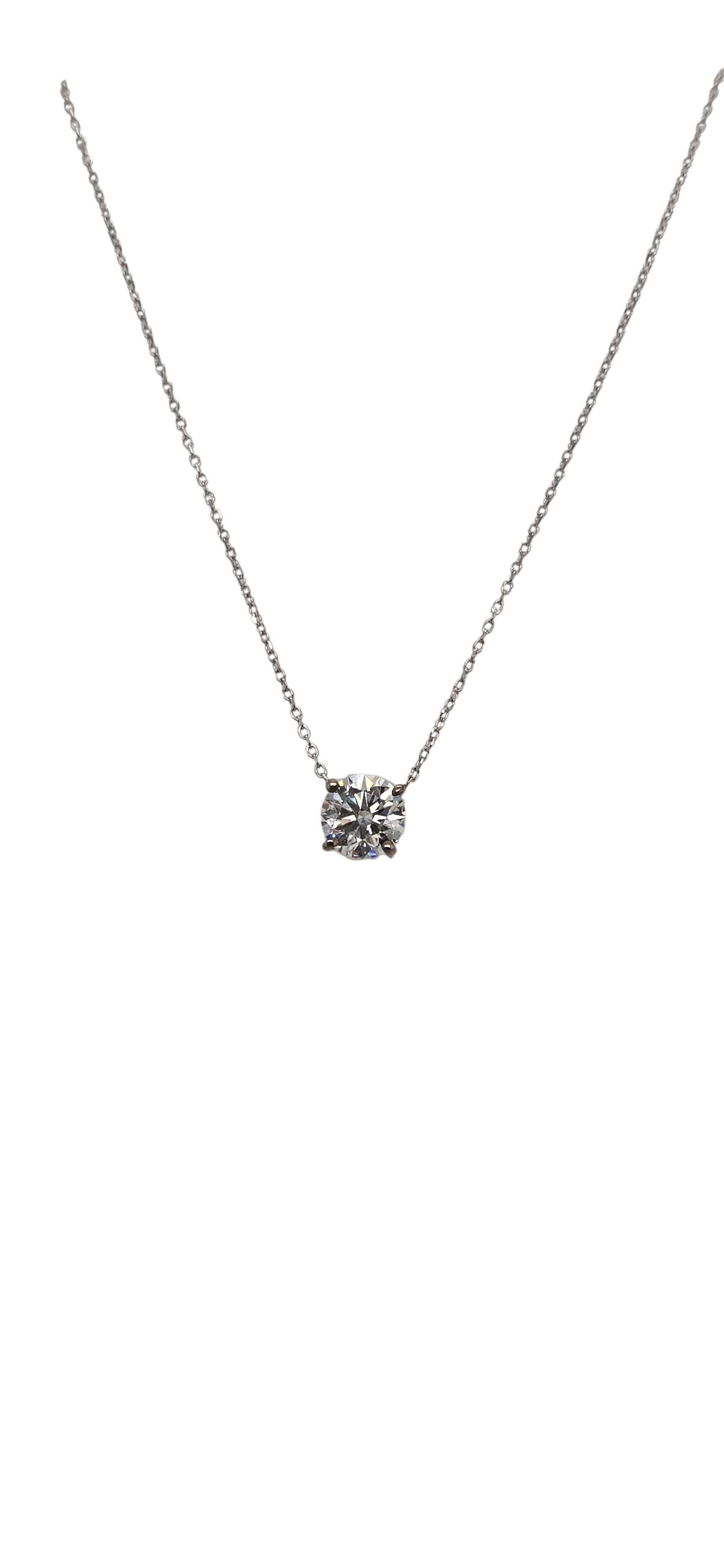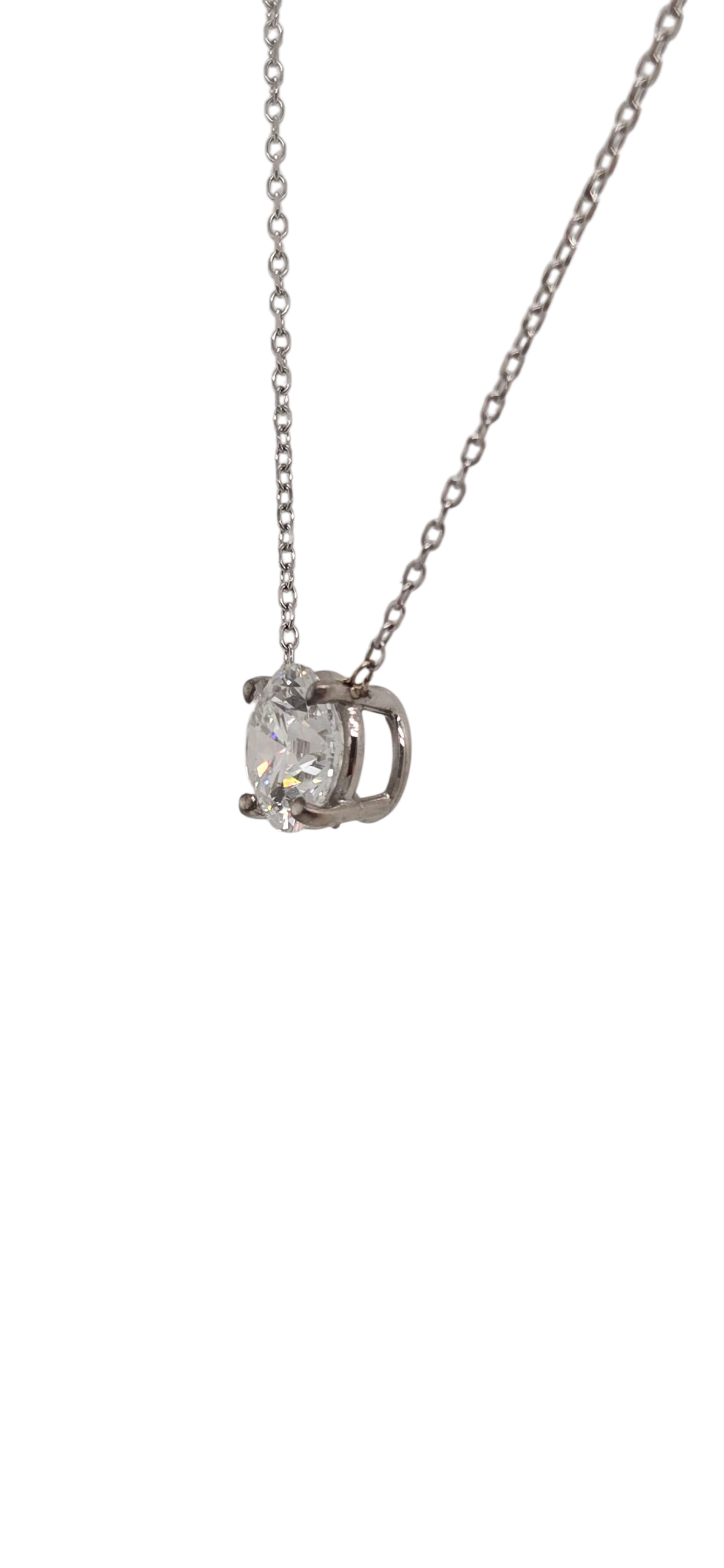 14k White Gold Solitaire Round Lab Grown Diamond Necklace