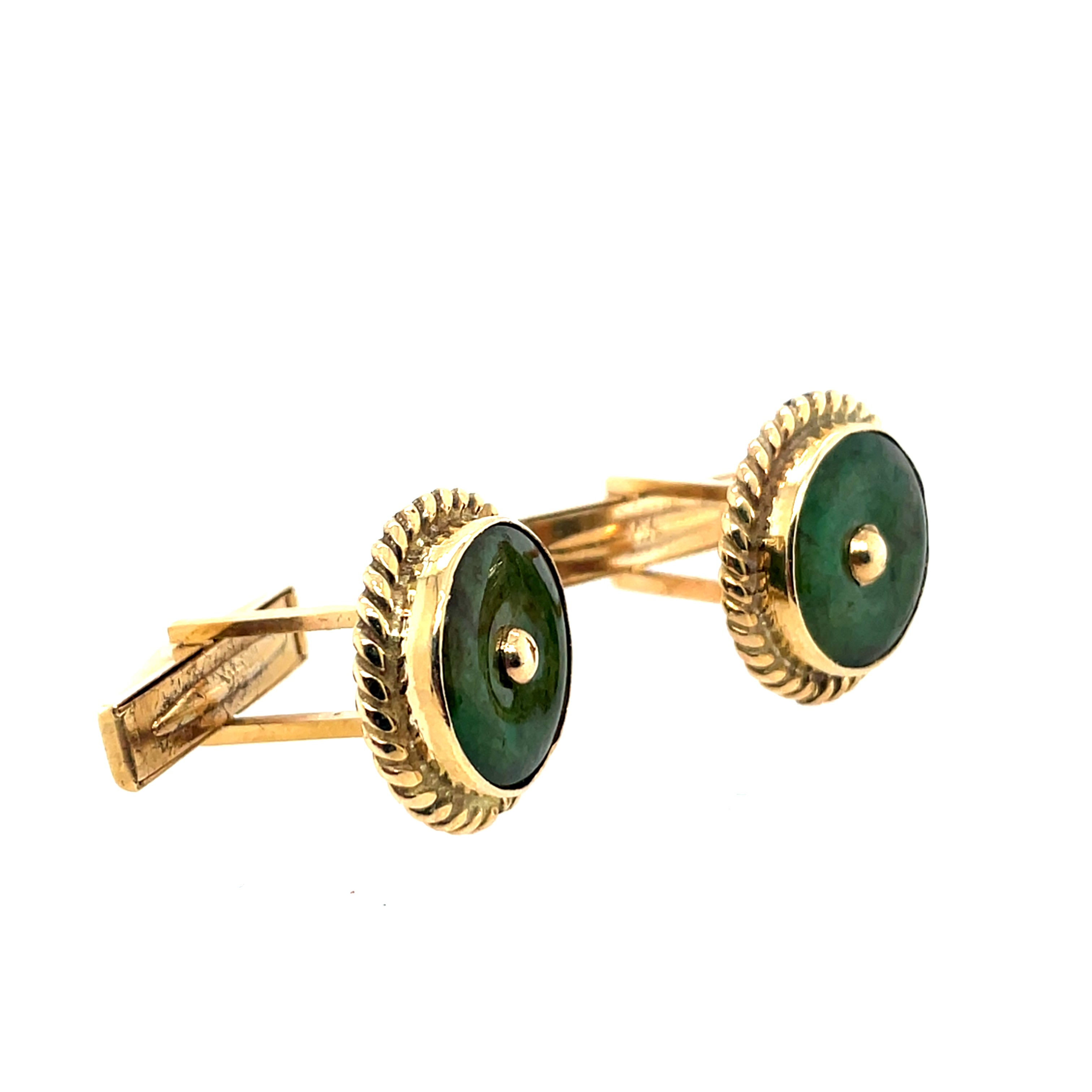 Elevate your style with our 14k Yellow Cuff Links featuring a stunning Jade Stone. Crafted with 12.5g of gold, these cuff links are the epitome of luxury. The 17.56mm size adds a touch of sophistication to any outfit. A must-have for the elegant and refined gentleman.
