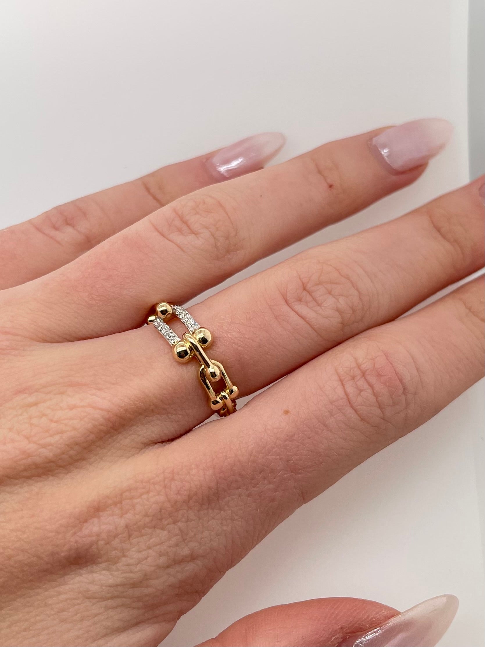 Indulge in luxury with our 14k Yellow Gold Hardware Fashion Diamond Ring. Crafted with the finest materials, this ring features 14k yellow gold hardware and 0.15cttw of sparkling diamonds. Elevate your style and make a statement with this stunning piece of jewelry.