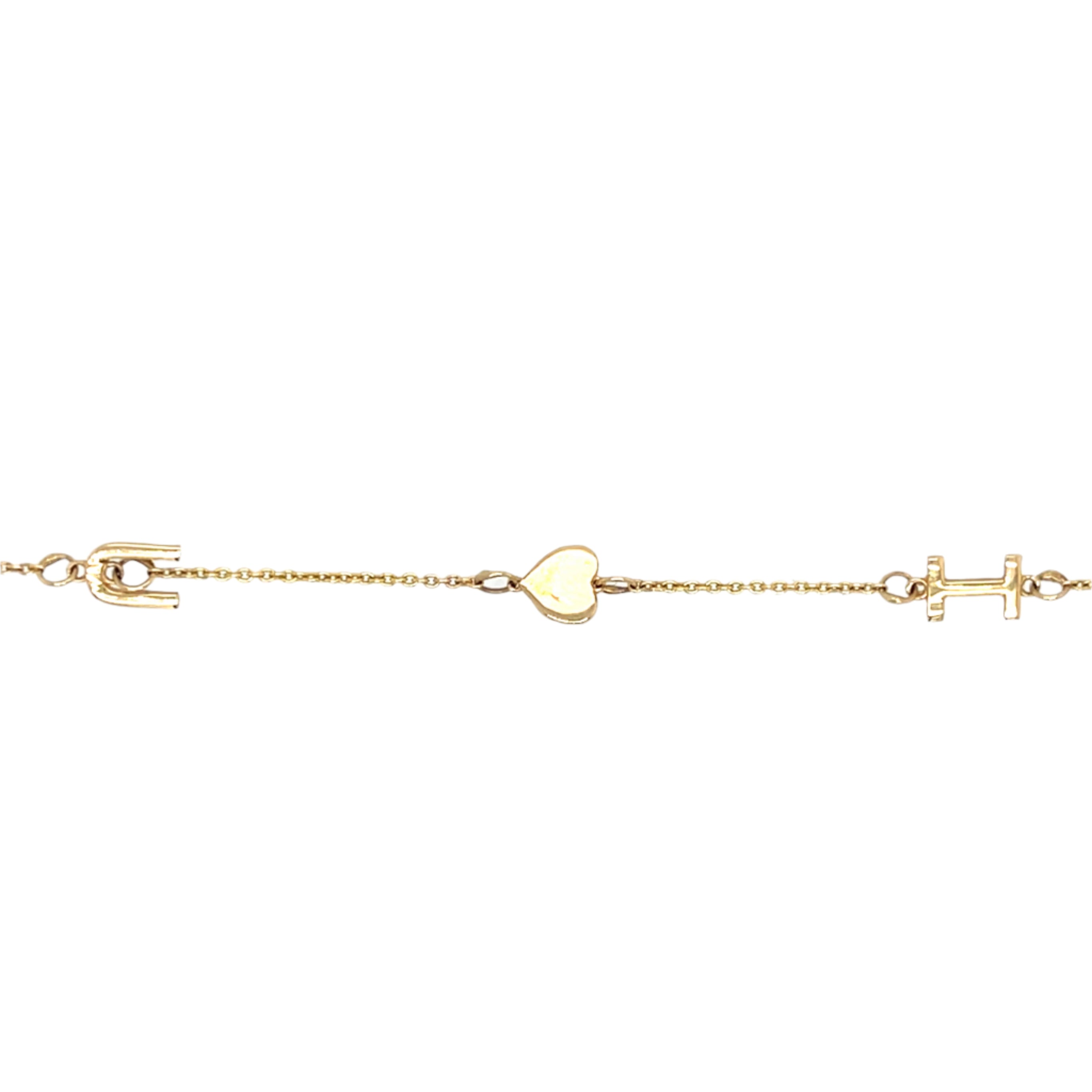 This stunning 14k yellow gold bracelet is a true expression of love. Its elegant design, crafted in the finest gold, spells out "I love you" in a unique and stylish way. A luxurious and meaningful gift for someone special.
