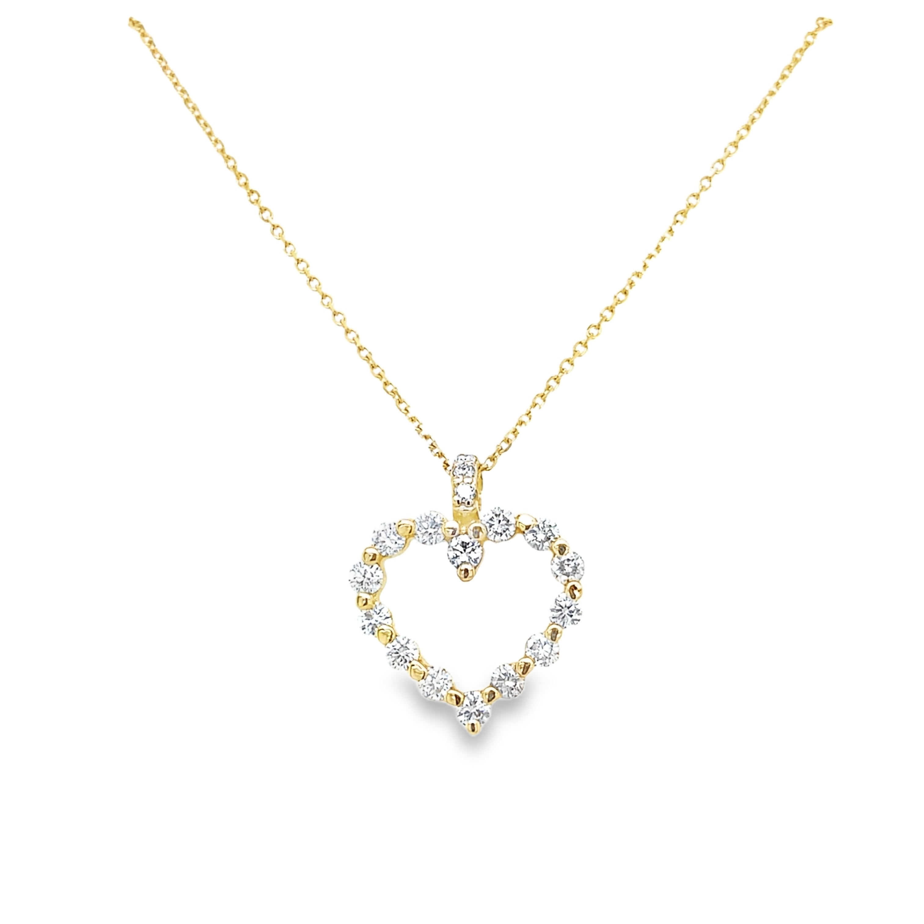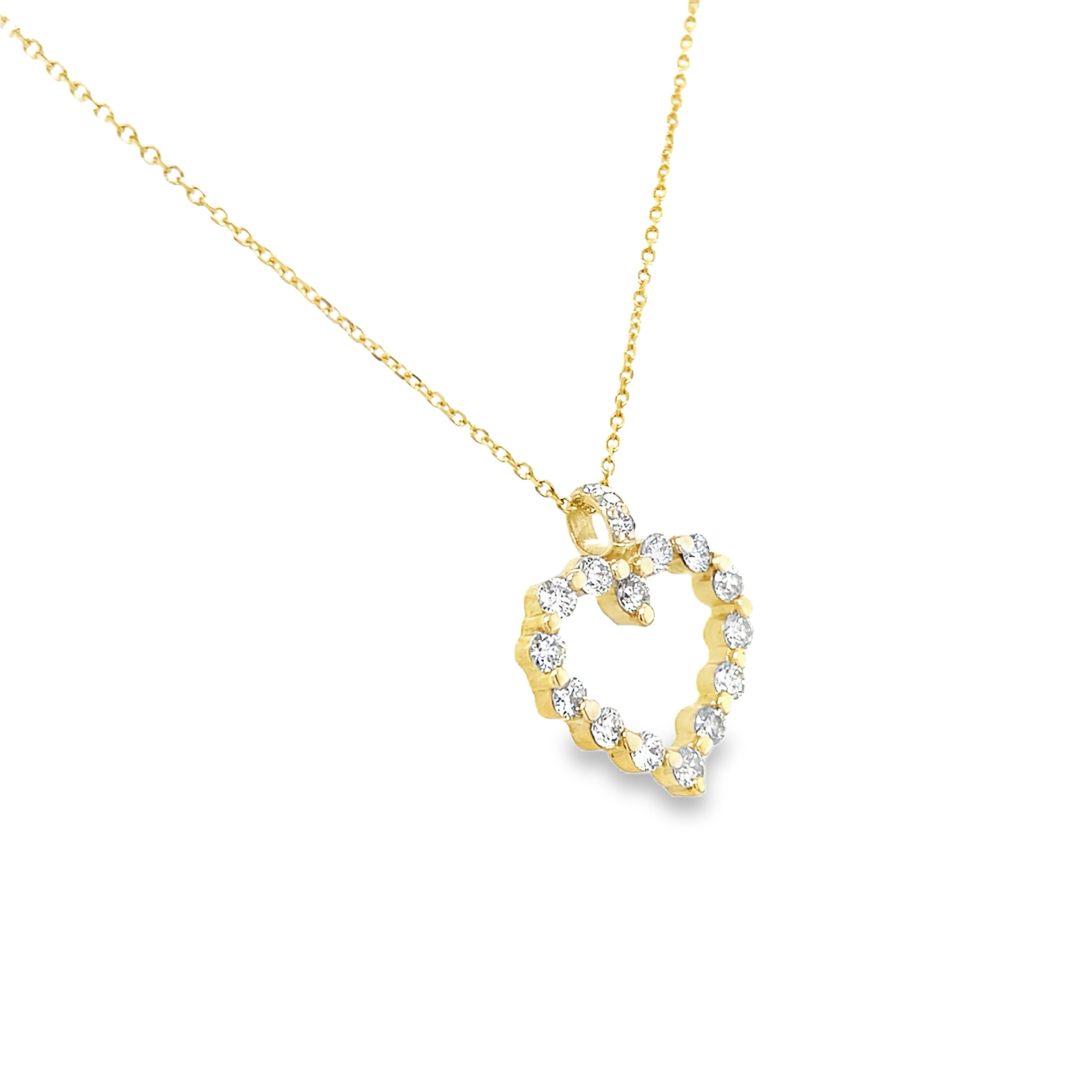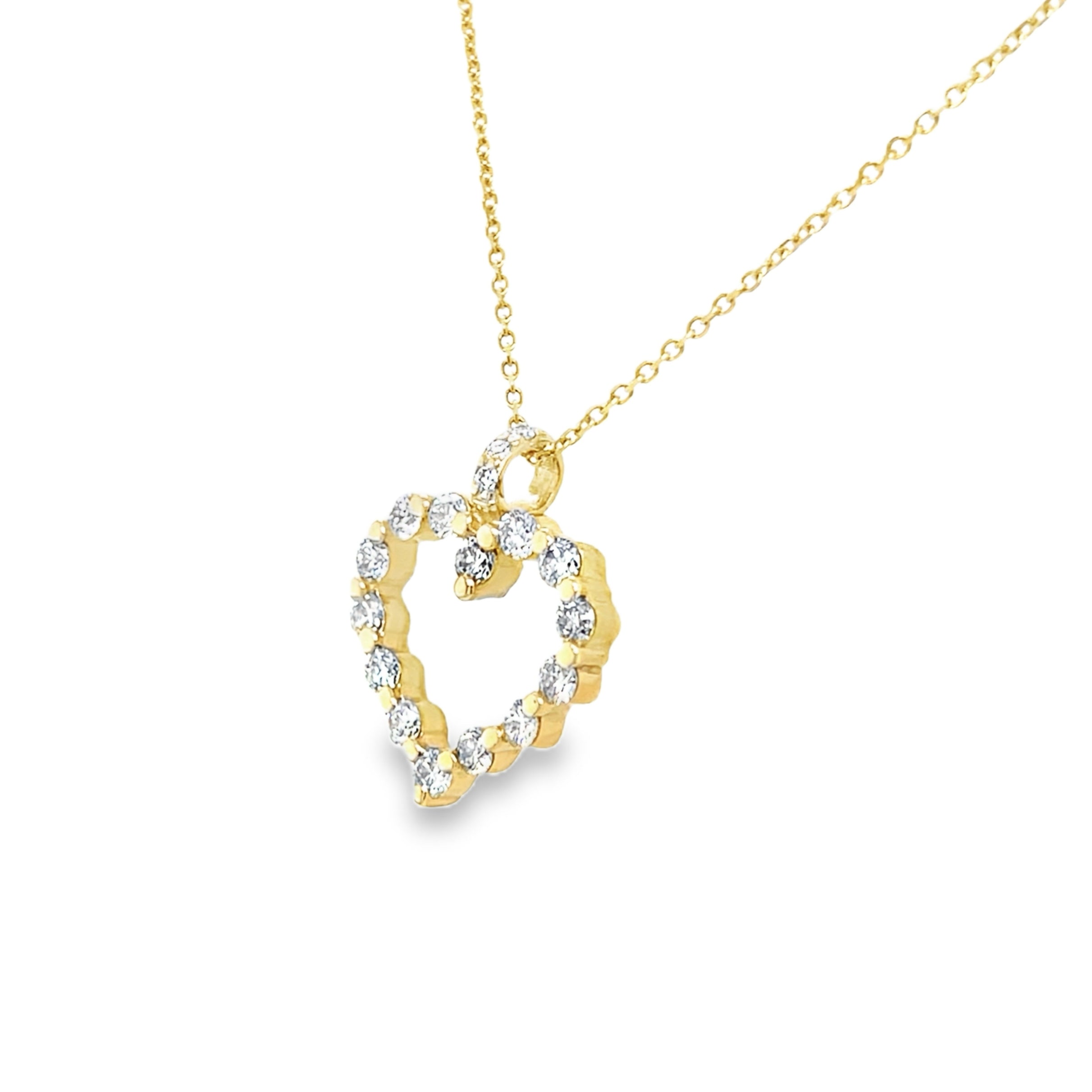 Indulge in the exquisite beauty of our 14k Yellow Gold Open Heart Pendant. This elegant piece features stunning lab-grown diamonds totaling 0.95 carats. The open heart design symbolizes love and capturing the heart's desire. Made with luxurious 14k gold, this pendant is a must-have for those who appreciate refined and sophisticated jewelry. Bring some sparkle into your life with this stunning pendant.