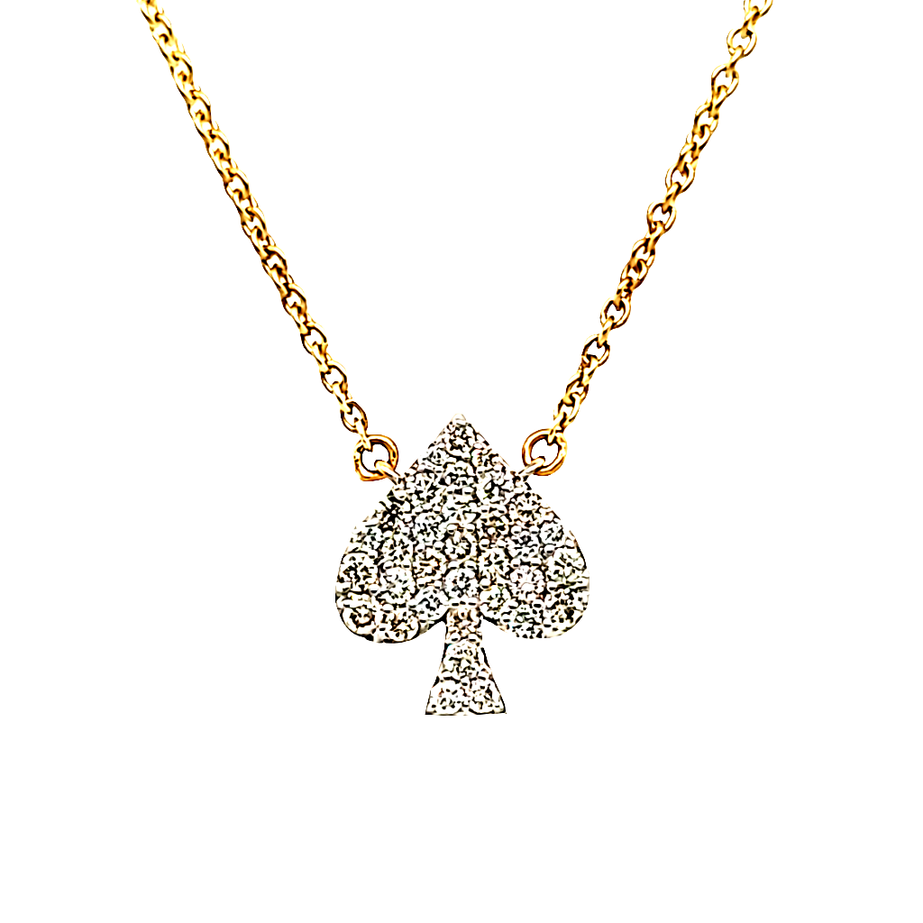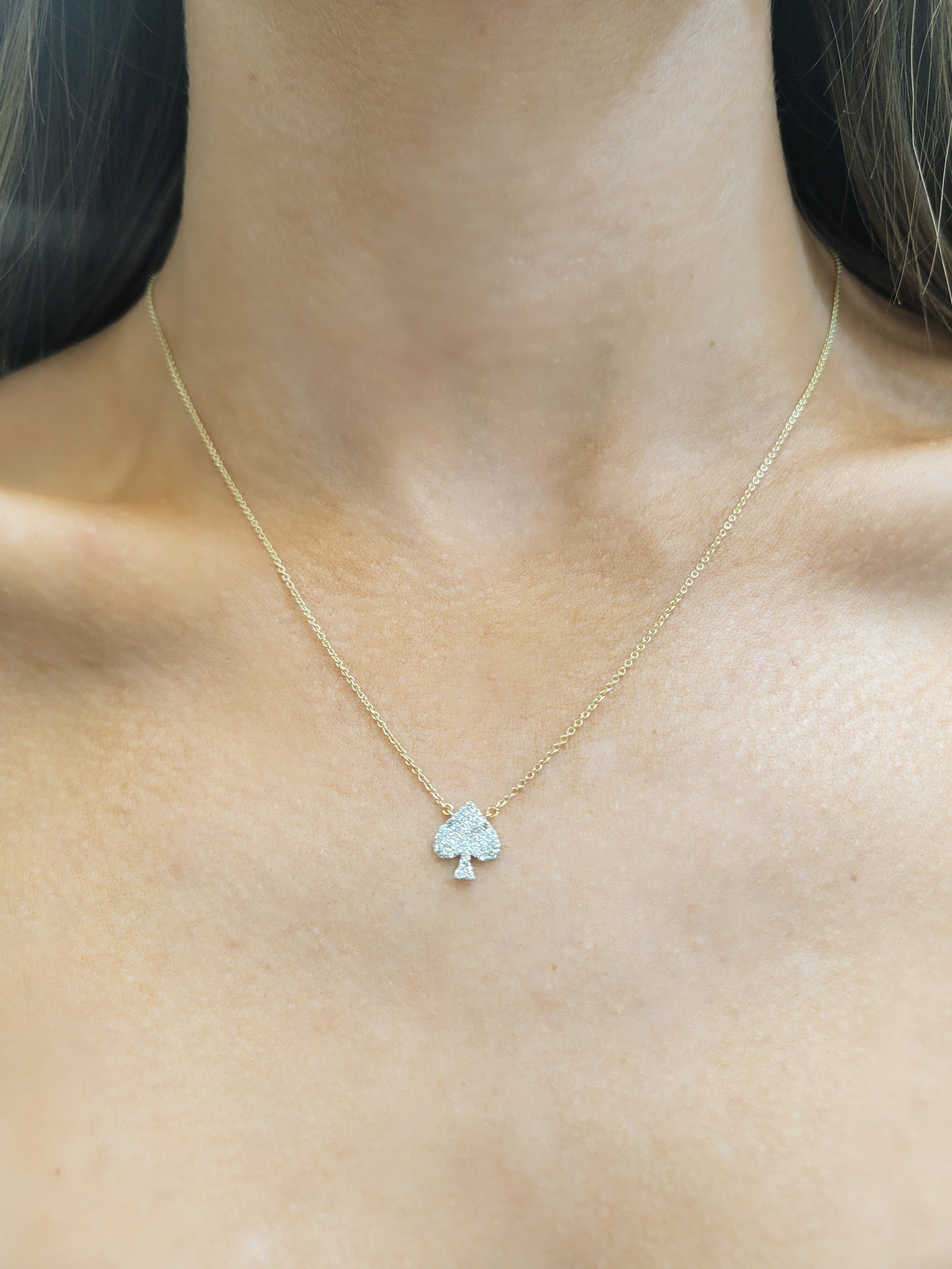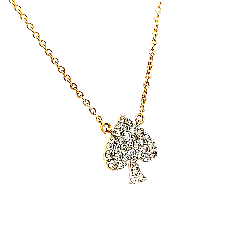 Indulge in the luxurious allure of our 14ky Diamond Spade Necklace. Exquisitely crafted and adorned with sparkling diamonds, this necklace exudes sophistication and elegance. Make a statement in any setting with this stunning piece.