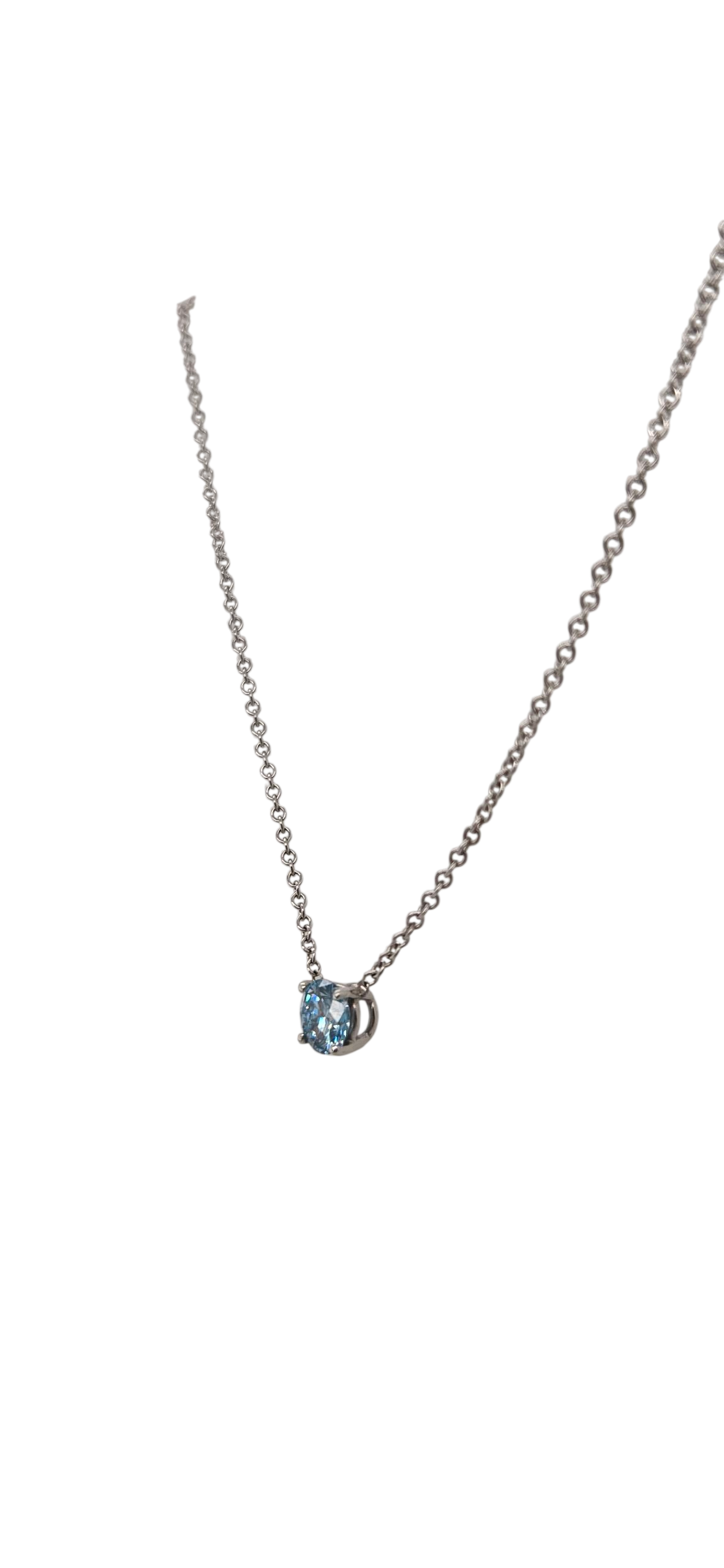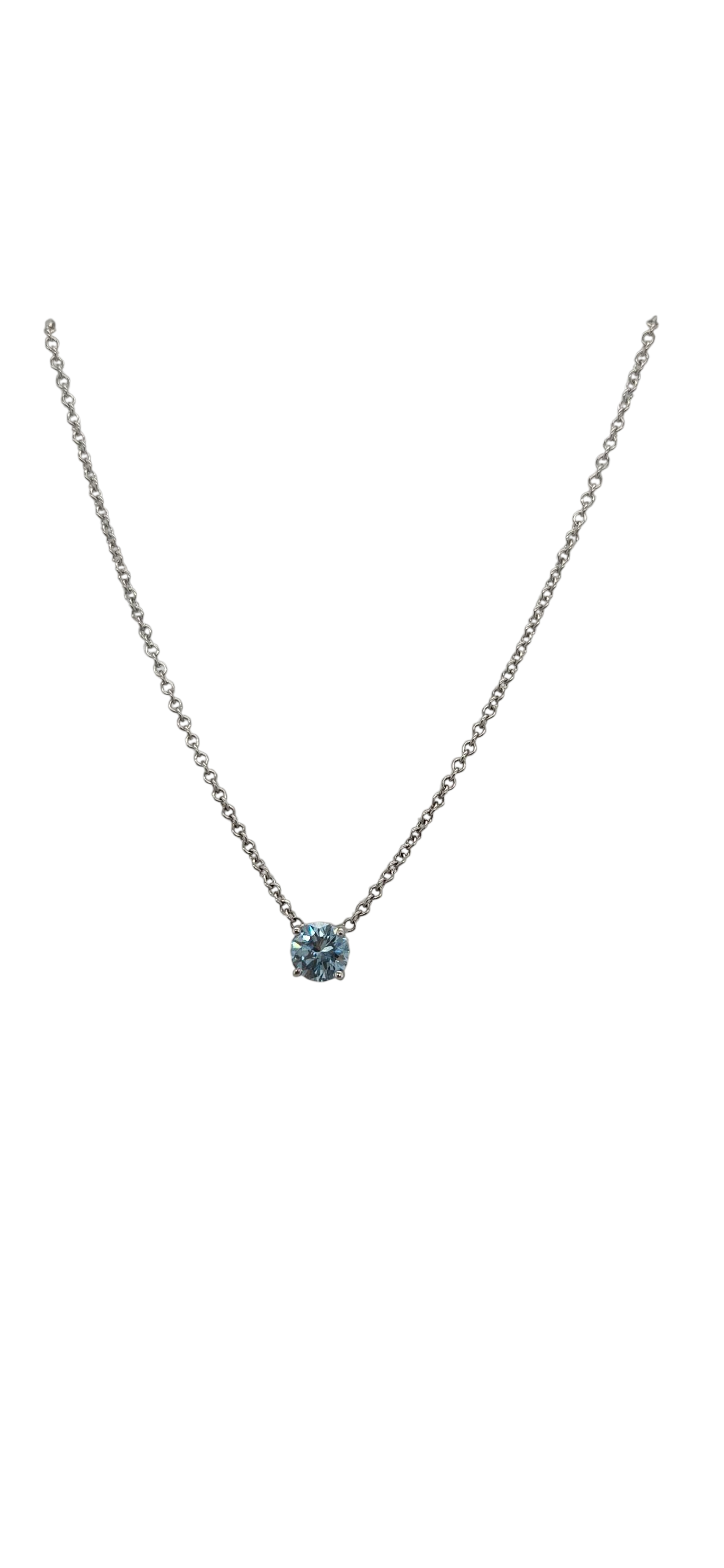 Elevate your elegance with this 18k white gold chain featuring a 0.50 carat round lab-grown diamond pendant in a captivating light blue hue. The refined craftsmanship and sustainable diamond choice create a timeless piece that adds subtle sophistication to any ensemble. Perfect for those who appreciate both beauty and ethical luxury.