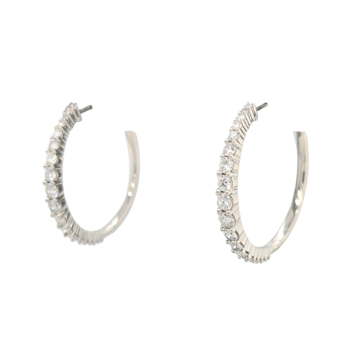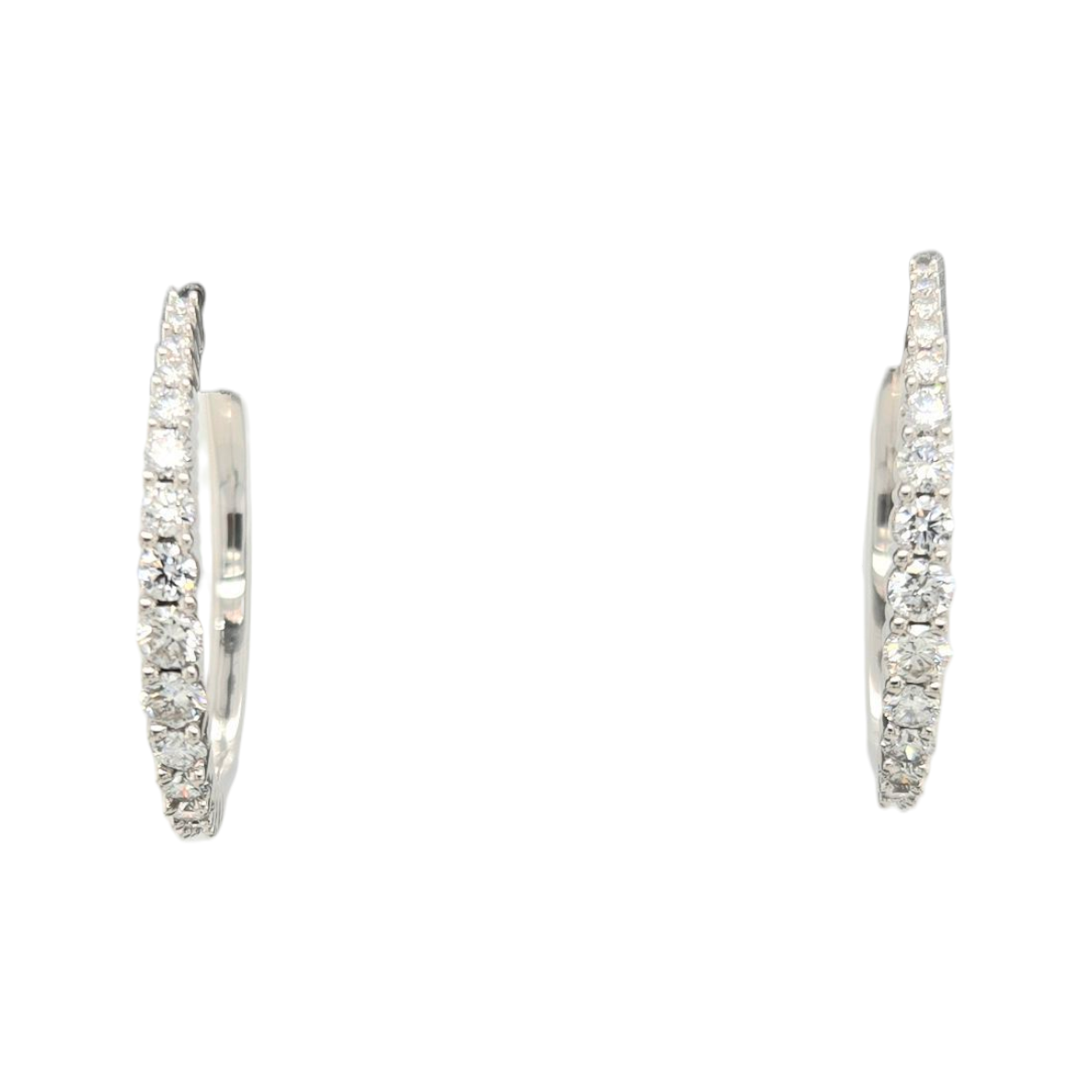 Elevate your everyday elegance with these sterling silver hoops featuring lab-grown diamonds that gracefully increase in size toward the center. Crafted with refined sophistication, these hoops showcase the brilliance of ethically sourced diamonds set in lustrous sterling silver. The graduated design creates a striking visual effect that catches light beautifully, making them perfect for both professional settings and special occasions. A timeless piece that combines modern sensibility with classic appeal.